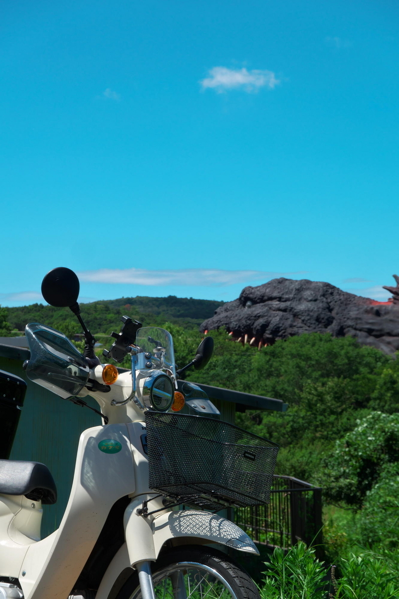 んな訳はありません(^^ゞ。ニジゲンのモリという公園のアトラクションで、ゴジラのジップライドがあるんですね。それが外から見えるところがあるんです。怪獣大好きなので、記念撮影に立ち寄りました(笑)