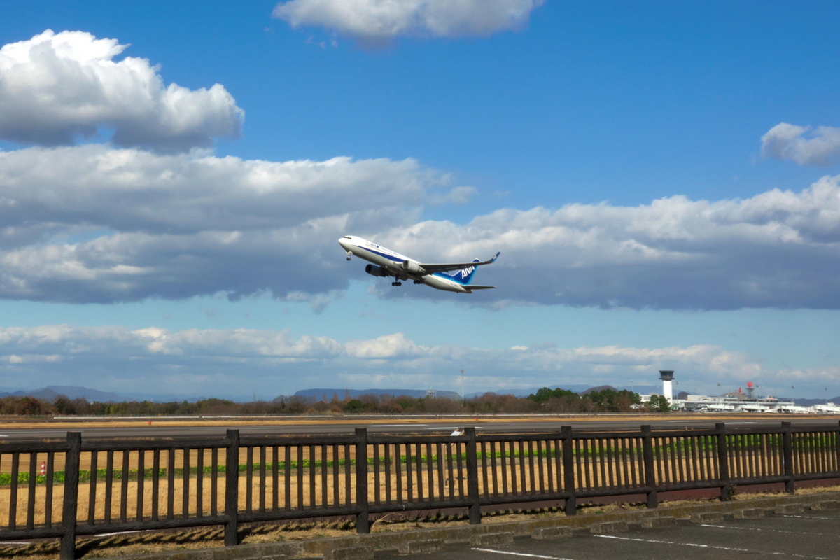 さて、目的は果たしたので、帰る前に景色の良いところで写真撮影会でもやるかと高松空港へ。ちょうど飛行機の飛ぶところを撮ることができました。