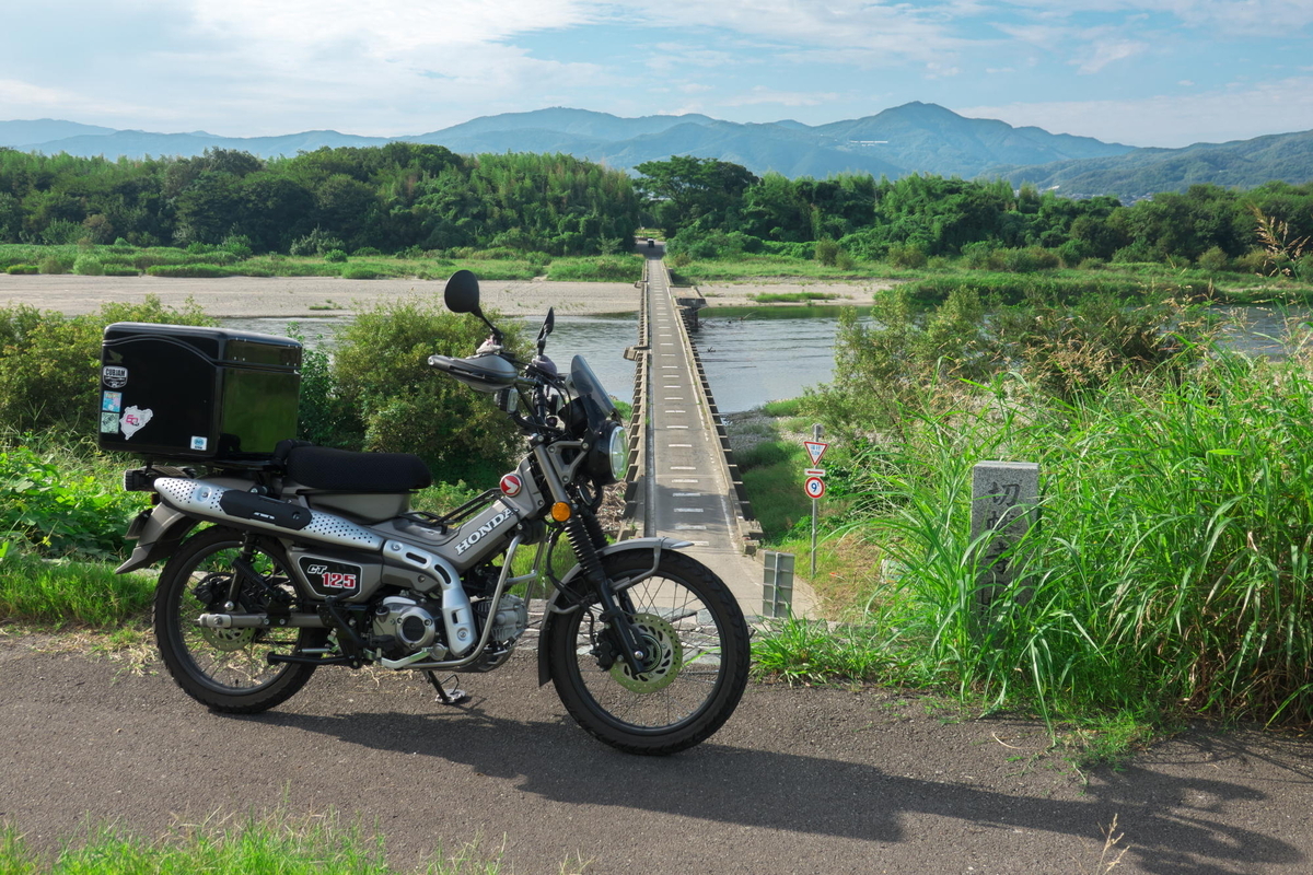 吉野川にたどり着き、潜水橋の千田橋で善入寺島に渡ります。善入寺島に入るには必ず潜水橋を渡る必要があるのです。徳島の潜水橋は、高知の沈下橋と違って縁の盛り上がりが大きいので怖さはだいぶ少ないですね(笑)
